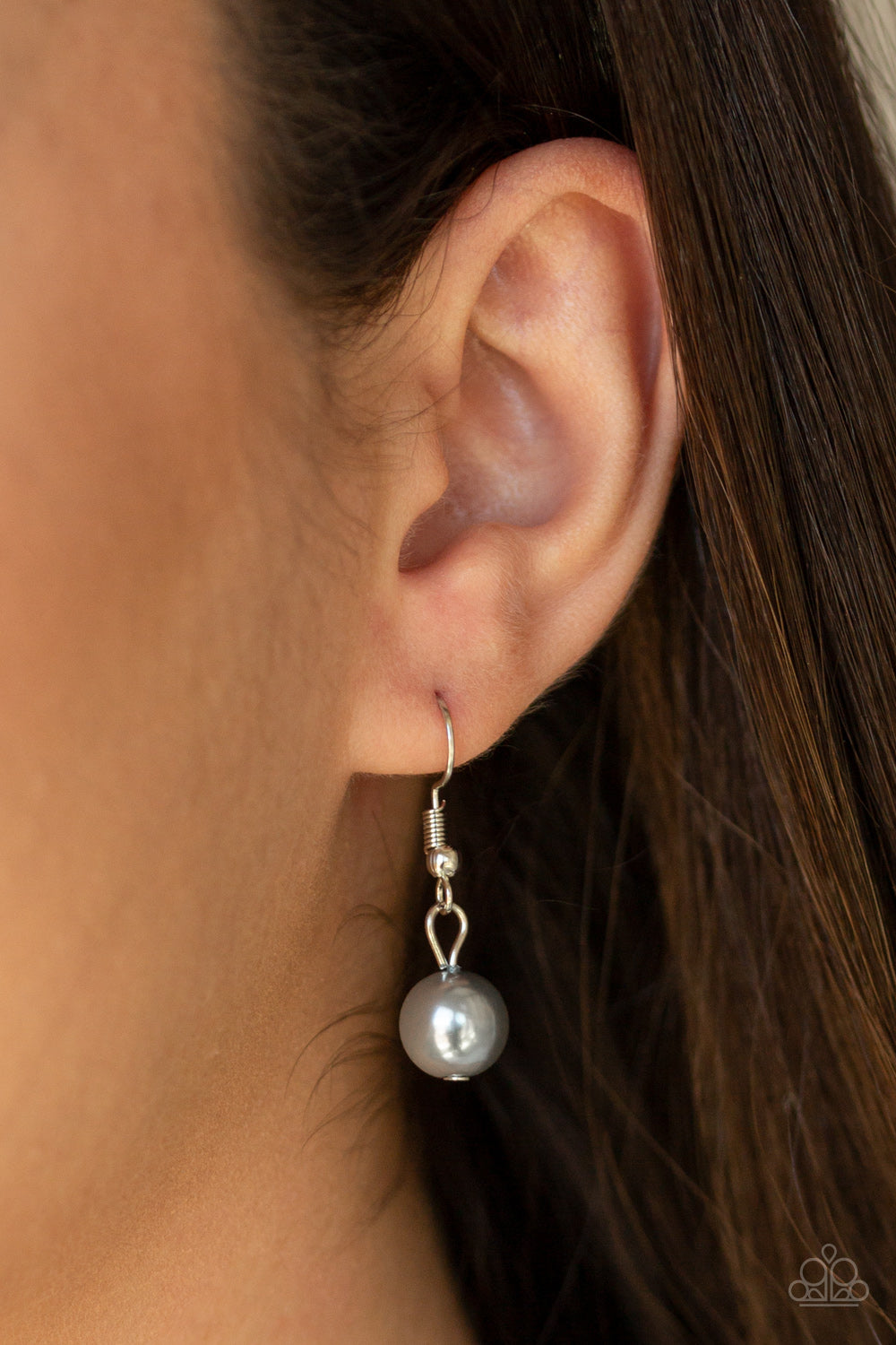 A refined collection of silver beads, silver pearls, and smoky crystal-like beads cluster below the collar, creating a timeless fringe. Features an adjustable clasp closure.
