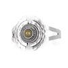 A refreshing green bead is pressed into the center of a hammered and studded silver floral frame atop an antiqued cuff for a seasonal look.